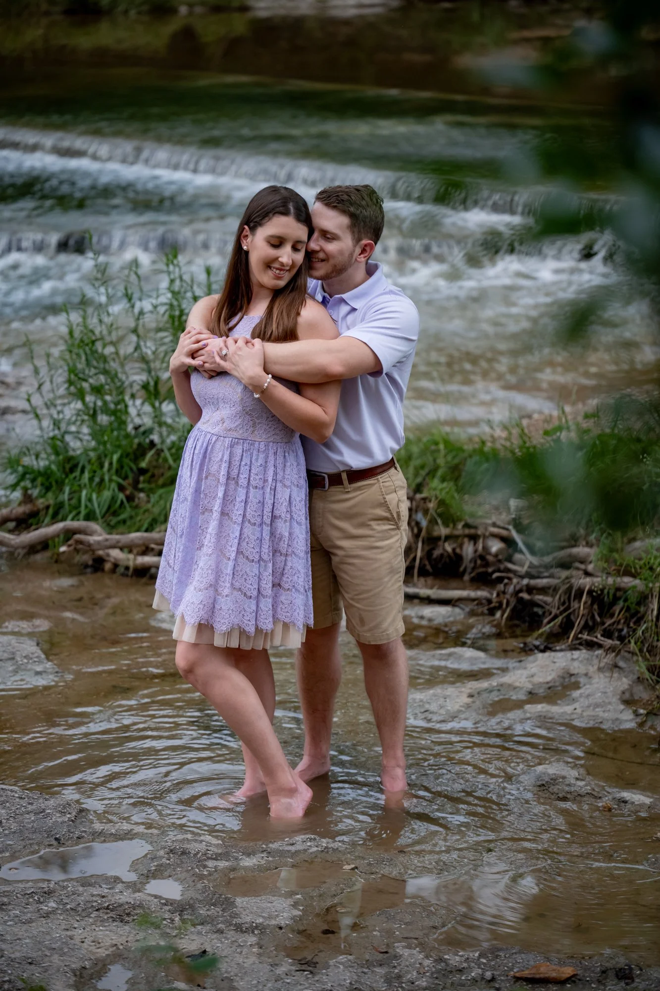 Airfield Falls in Fort Worth, TX, provided a breathtaking backdrop for Kelsey and Matthew’s engagement portrait session. With the warm sunlight filtering through the trees and the cascading water of the falls, this location is a true gem, especially in the golden hours of the evening.