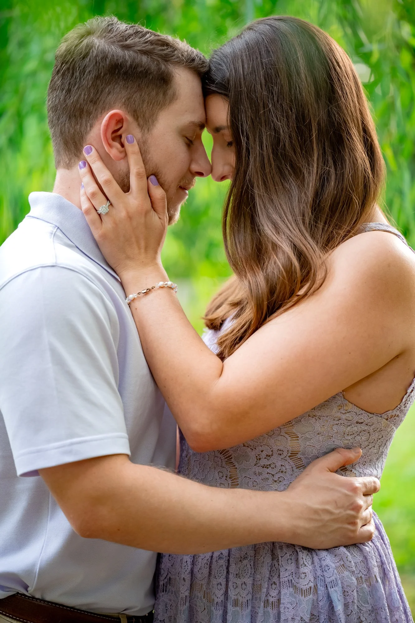 We began Kelsey and Matthew’s session on the path to the falls, taking advantage of the gorgeous light filtering through the trees. The evening sun cast a golden hue, creating a dreamy ambiance that was perfect for their portraits. Walking hand in hand, Kelsey and Matthew’s joy and love for each other were beautifully highlighted by the natural surroundings.